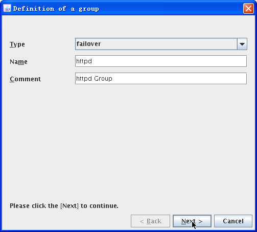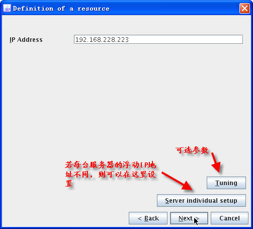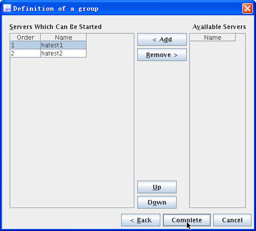 点击“Next”后,出现的对话框是要求选择该组可以运行的服务器节点,通过“<Add”添加两服务器: