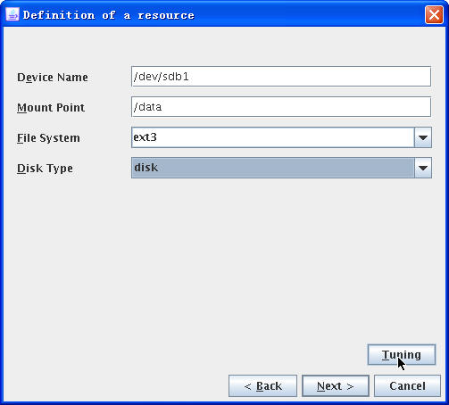 点击“Next”,然后输入挂载共享磁盘的相关信息,在“Tuning”部分也有一些可选的参数: