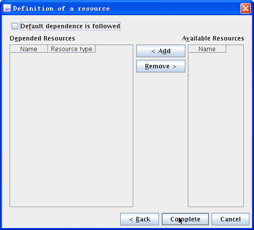 点击“Next”后,取消“Default Dependence is followed”选项,然后讲右侧可用的有效资源添加到左侧