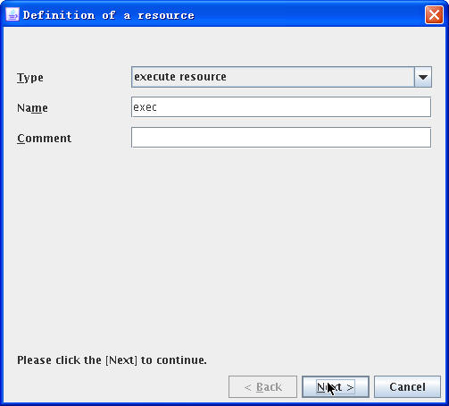 在“Type”一栏中,选择“execute resource”,并给予其一个名称monexec(不能与已有资源重复):