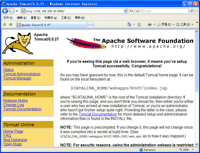 # wget http://apache.mirror.phpchina.com/tomcat/tomcat-5/v5.5.27/bin/apache-tomcat-5.5.27.tar.gz