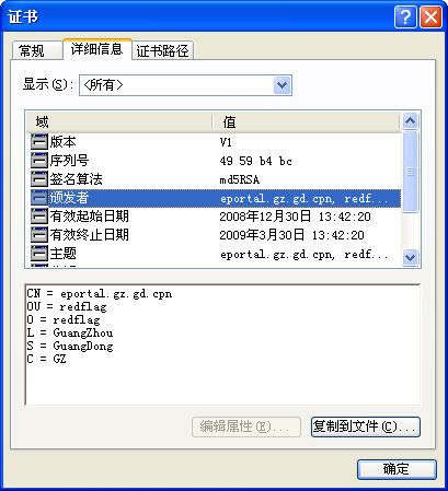 Issuer: CN=eportal.gz.gd.cpn, OU=redflag, O=redflag, L=guangzhou, ST=guangdong, C=GZ