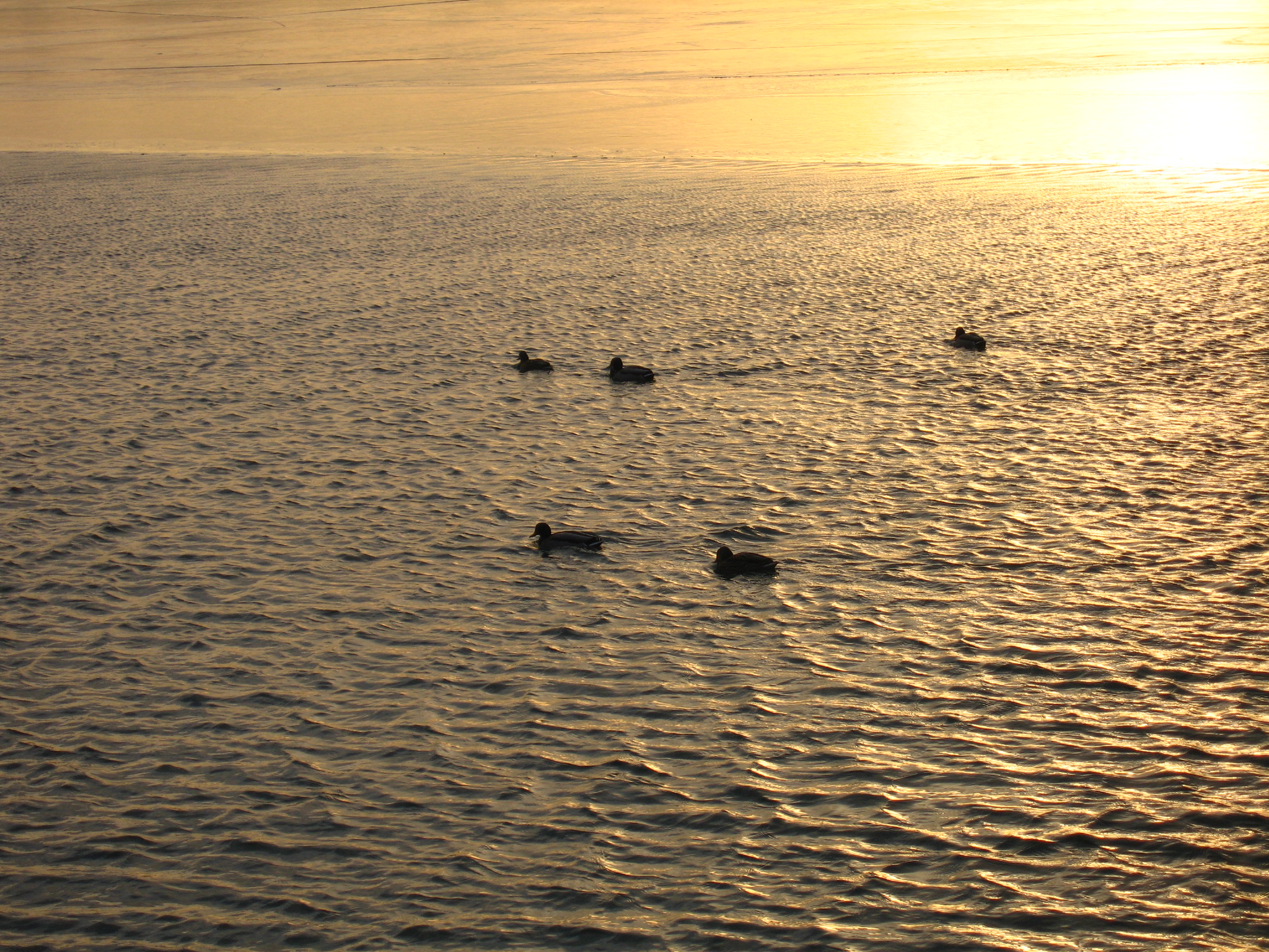 冰水交融的环境,看上去像有一对情侣在漫步沙滩。。