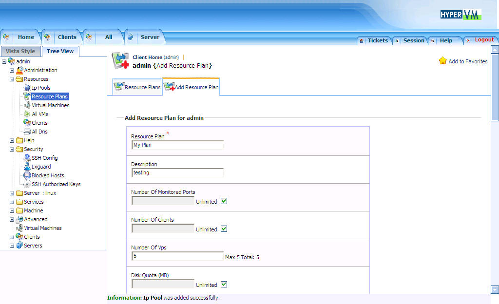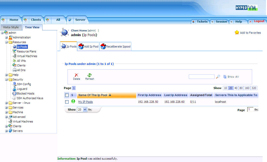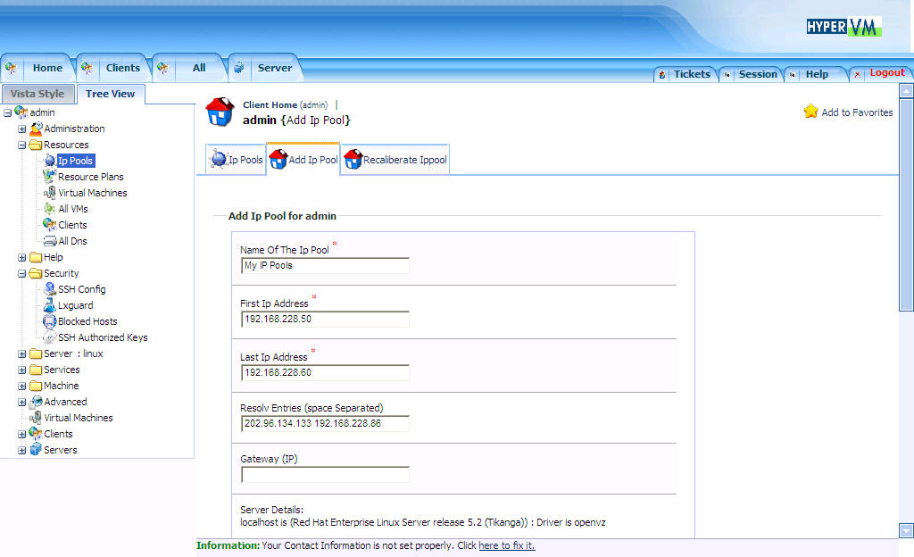 (Gateway对于openvz没有意义,只对xen有用。记住,在最下面需要把允许使用该IP Pools的服务器选上)