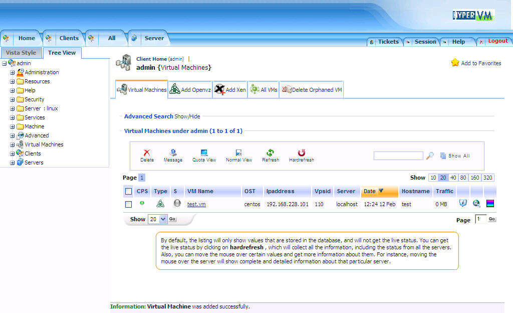 HyperVM可以支持集群应用,也就是同时管理多台服务器上的虚拟机。但HyperVM是受协议控制的,Free版本只能支持5 vps pack (2 servers)。详细可看这里:点击。