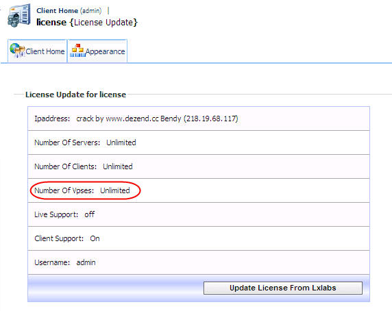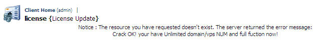 throw new lxException ("Crack OK! your have Unlimited domain/vps NUM and full fuction now!", "");