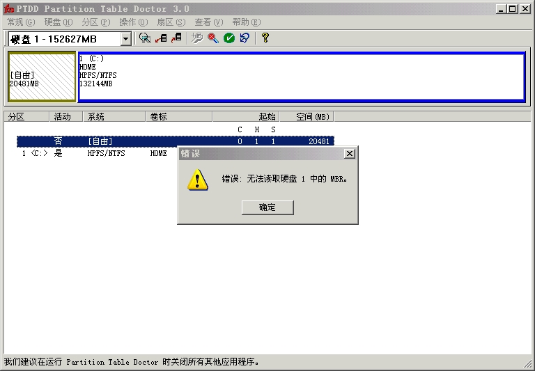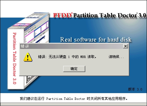然后,我尝试运行“Partition Table Doctor”工具,提示无法读取MBR: