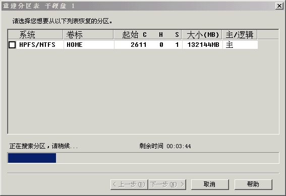 忽略后,看到下面的硬盘信息,由于无法准确判断原分区的大小,为保证不会影响实际数据,不能采取重建分区的方式。