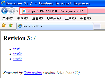 这时,你可以访问https://ip/看看,如果已经做好mod_dav_svn的配置,还可以直接用https://ip/repos访问对应的版本库。