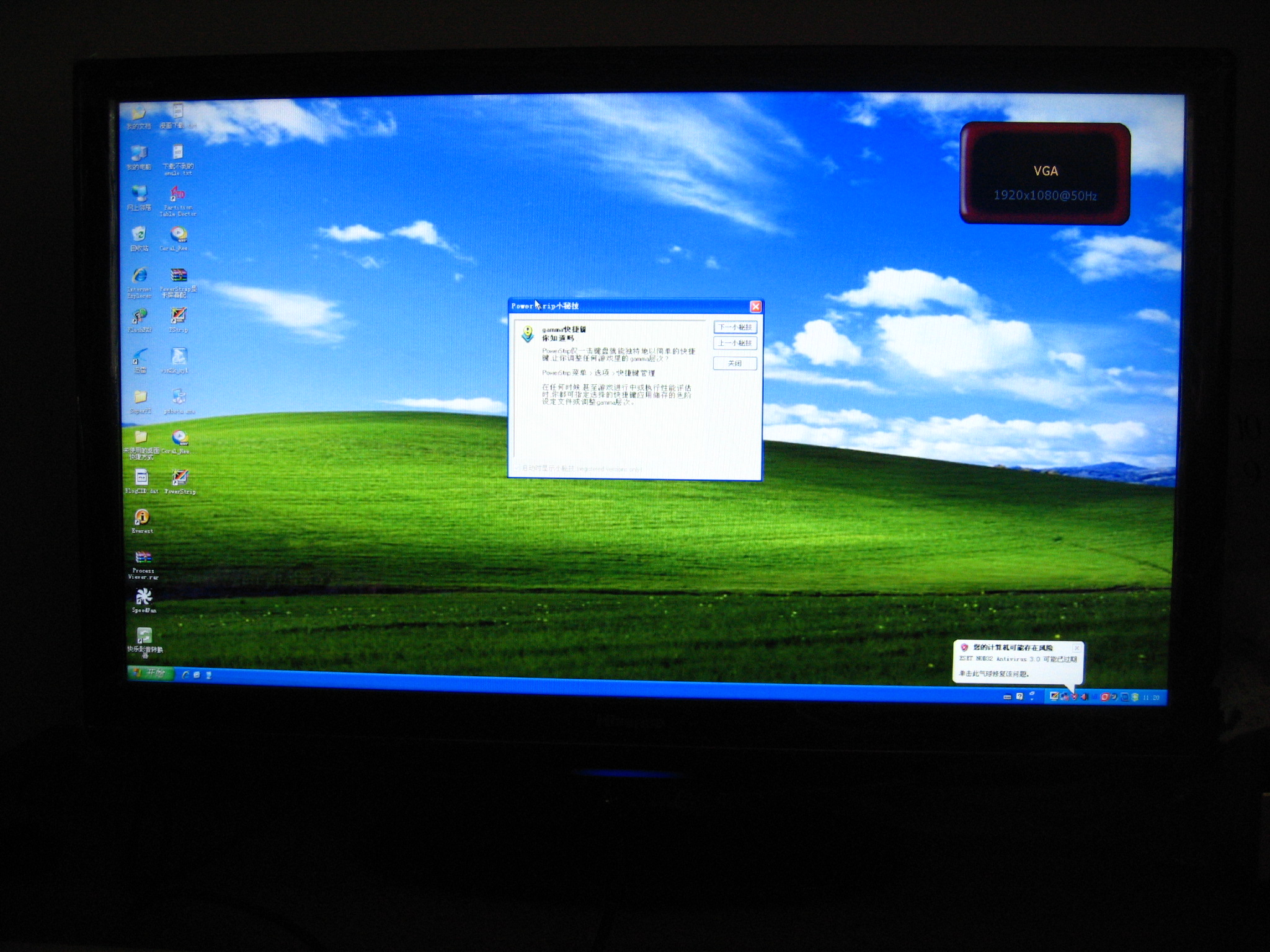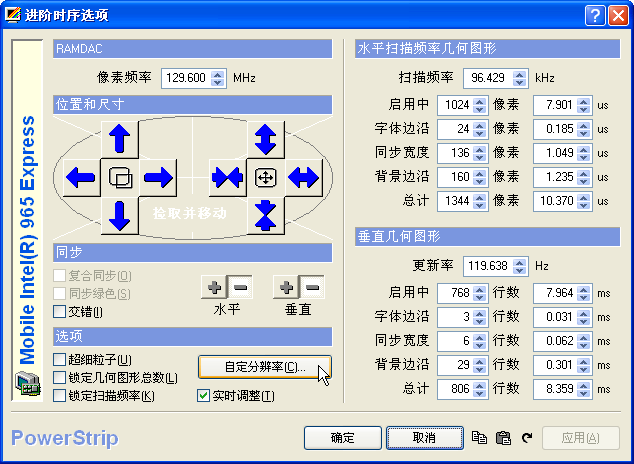 在海信的论坛上,曾看到利用NVIDIA显卡驱动的高级功能中提供的屏幕位置调整工具,配合电视自身的位置调整一同设定以解决该问题。但可惜Intel 提供的显卡驱动并没有提供该功能。受此启发,我利用一款经典的显示卡/屏幕功能配置工具:PowerStrip软件来处理。