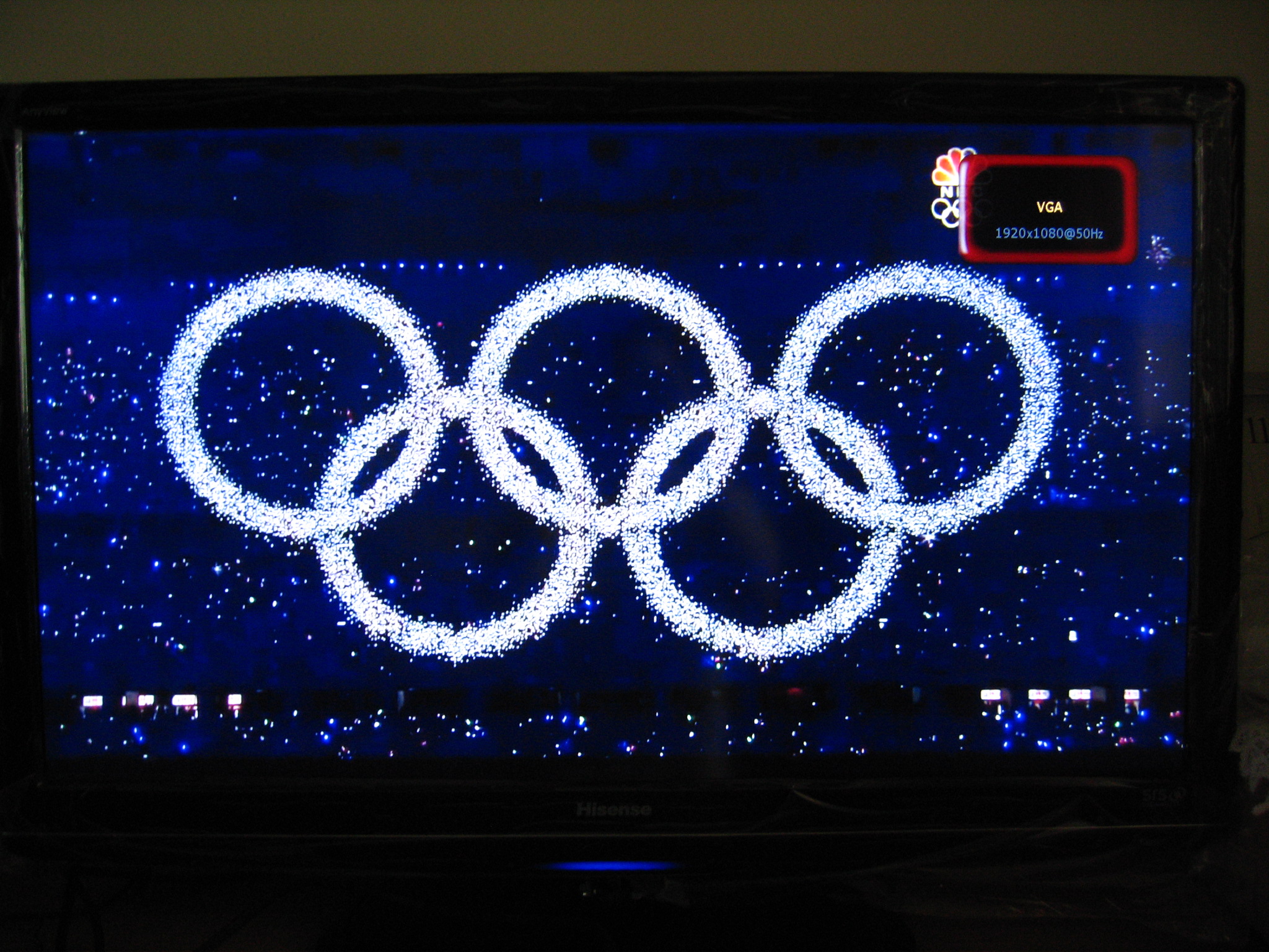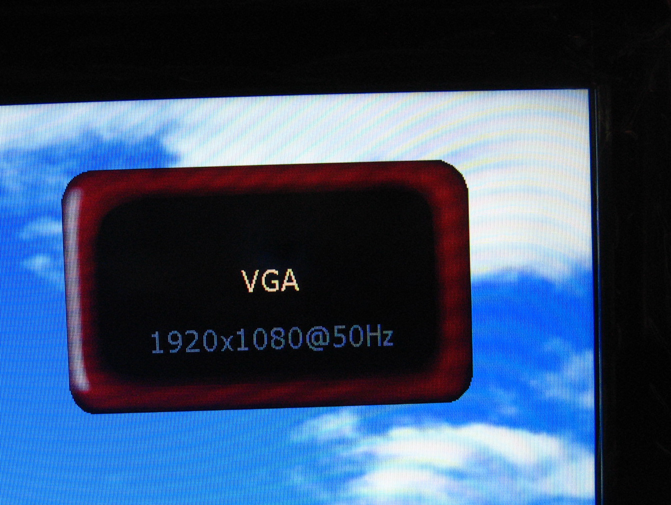 请留意,这时电视屏幕已经完全满屏显示,从电视右上角的信息可见,这时的分辨率为1920x1080@50Hz: