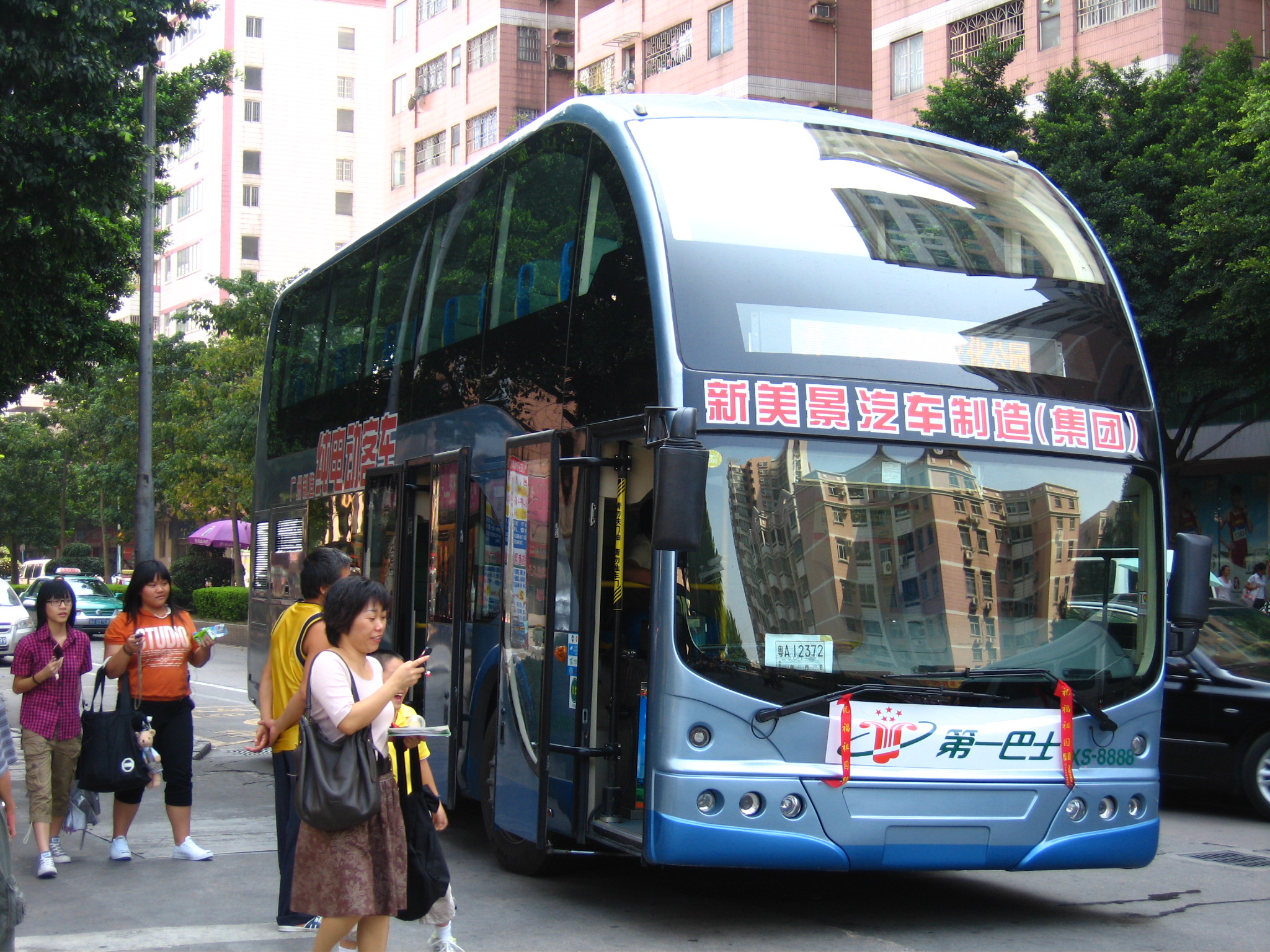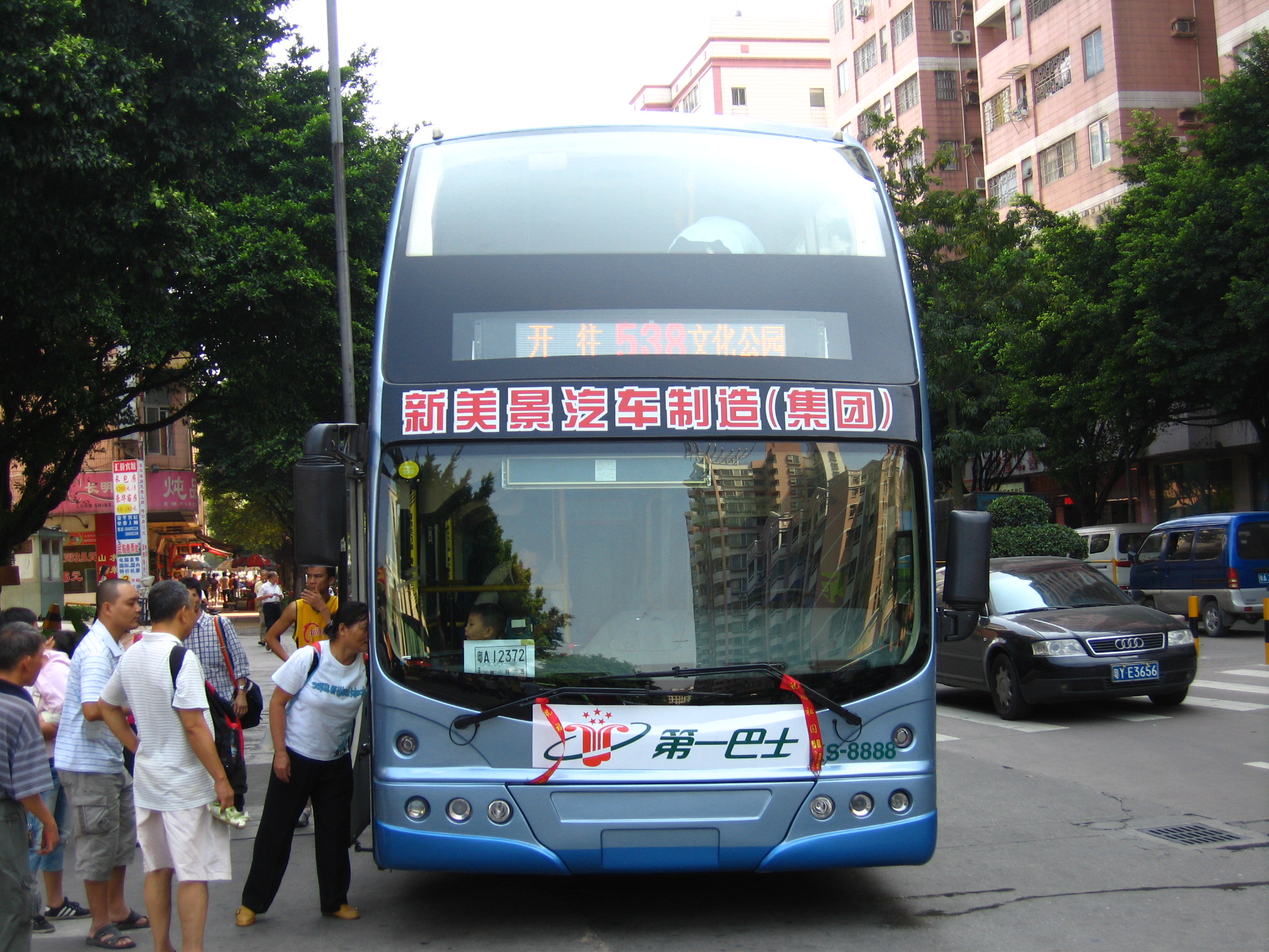 从报纸上获知,由广州生产,每架造价200万的纯电动双层公交车大巴国庆期间开始试运行。特趁放假有空,和仔仔一起到538文化公园总站试试。