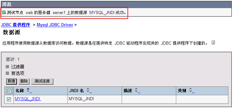从“JDBC 提供程序”—“Mysql JDBC Driver”—“数据源”中进行连接测试,结果如下: