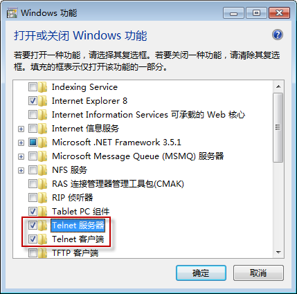 win7 下面,可在“控制面板”——“程序”——“打开或关闭Windows功能”,中安装: