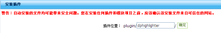 进入Bo-Blog 的后台界面——外观扩展——插件管理,在安装插件部分,输入插件的目录名称,即dphighlighter,然后确认即可: