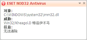 NOD32 误报IMM.DLL中Win32/Kheagol.D 病毒