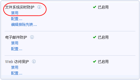 最后,重新打开“文件系统实时保护”,问题暂时处理。