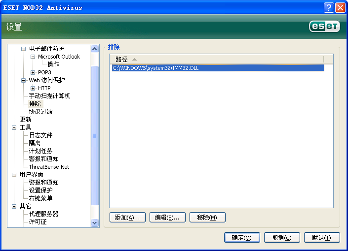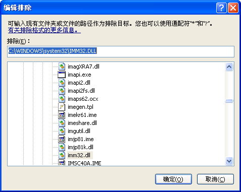 2010-10-07 00:16 NOD32 进行一次新的病毒库更新后,删除IMM32.DLL在排除列表上的位置,上述问题也没有再出现。