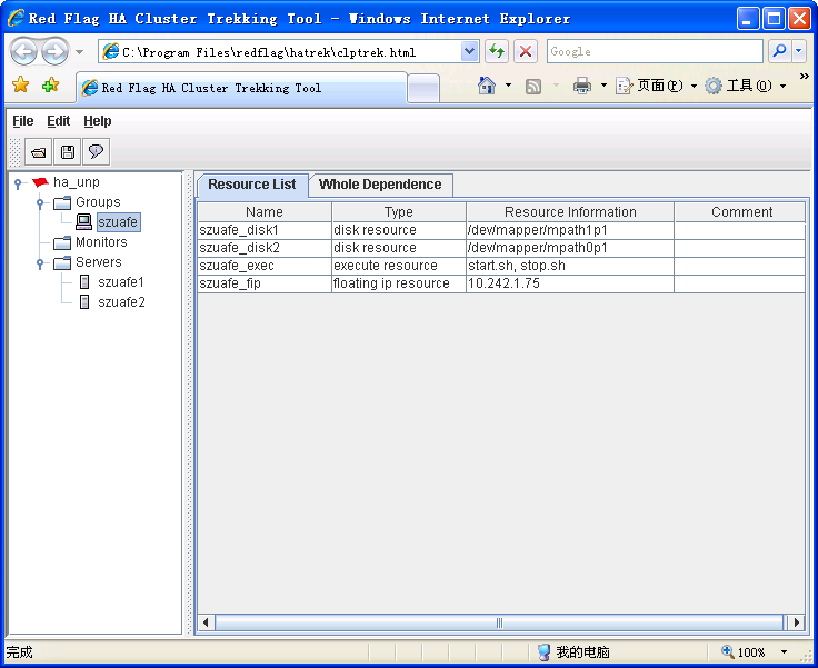 保存该文件后,双击HA Cluster Trekking Tool 的安装目录下的clptrek.html ,即可用IE 打开该配置工具:
