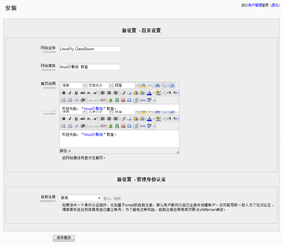 下面的工作就简单了,访问http://ip/moodle。(地址由上面的设置决定,若使用虚拟主机,请先做好相关配置)