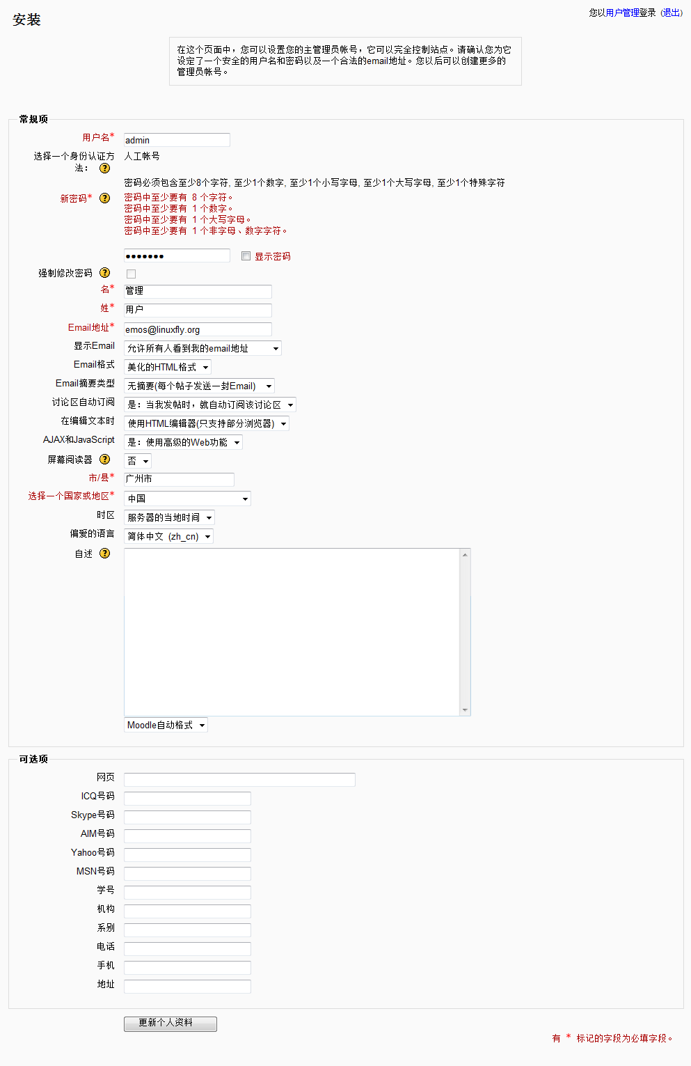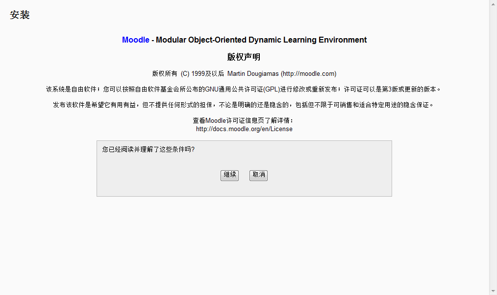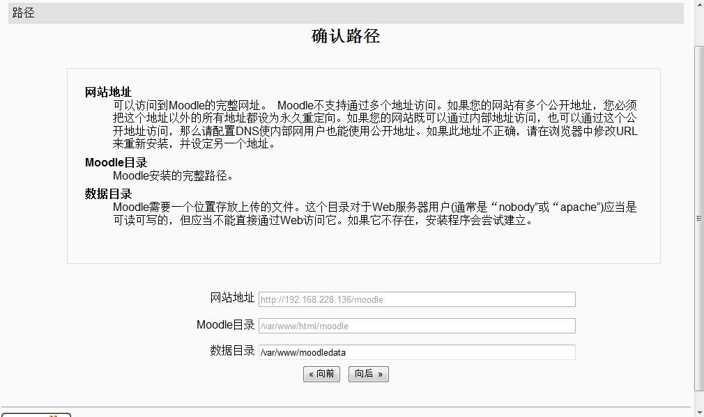 下面的工作就简单了,访问http://ip/moodle。(地址由上面的设置决定,若使用虚拟主机,请先做好相关配置)