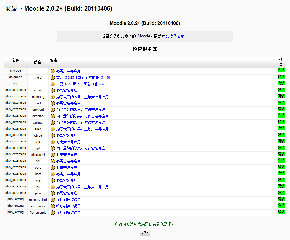 当前最新版本是2.0.2+,可以从官网上获得源码。其用PHP开发,可运行在Mysql 等数据库之上。从安装帮助可知,Moodle 2.0其必须运行在PHP 5.2.8 以上版本,但不能是PHP 5.3.0,必须为PHP 5.3.2以上版本。我这里将会使用PHP 5.3.6。
