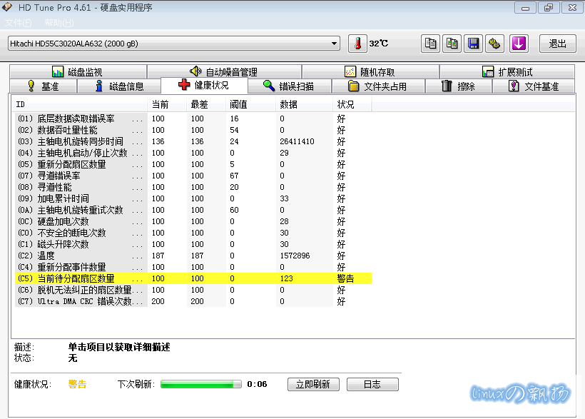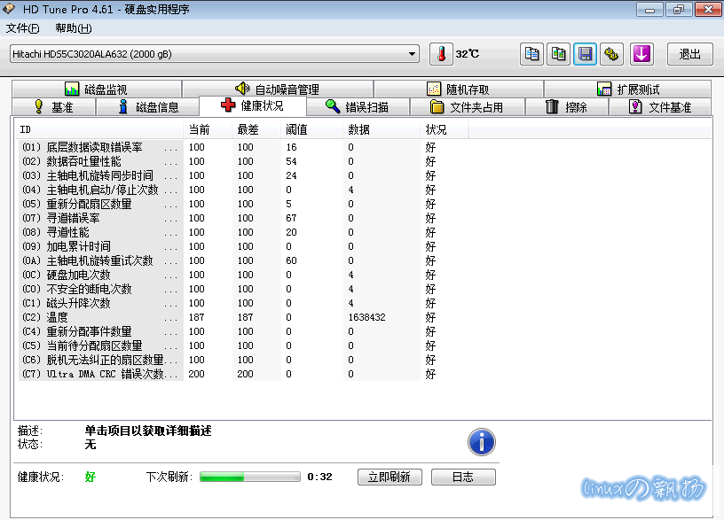 用HD Tune Pro 4.61查看健康状态: