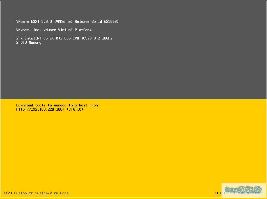 重启机器后,会看到与ESX 3i 类似的提示界面: