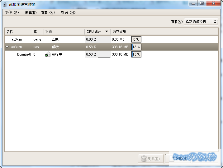 虚拟系统管理器可监控每台虚拟机(Dom0和DomU)的状态,通过命令行工具xm 可能做得很好(具体见参考文档):