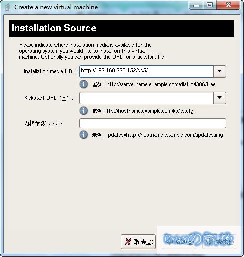 通过virt-manager 可在图形界面下进行虚拟机的安装,而virt-install 命令则可用于字符界面下进行安装,其完全不需要XWin支持。当然,若需要图形界面,也可通过--vnc 参数,激活VNC远程界面。下面是一个常见的用法:
