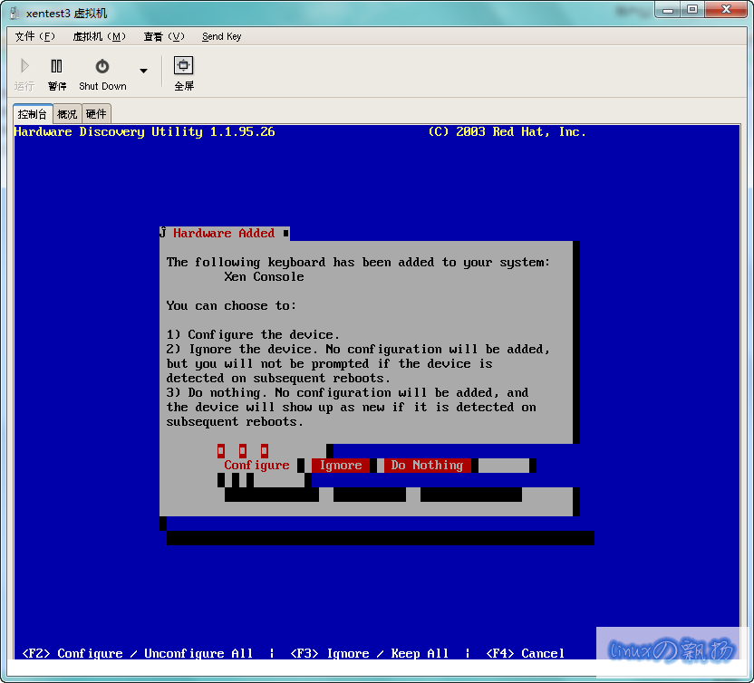 进入系统时,会提示对Xen Console 进行简单的配置,点击“下一步”即可: