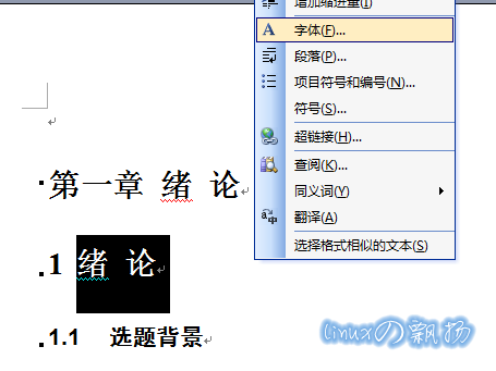 然后选中“ 1 标题”这行,右键选择“字体”: