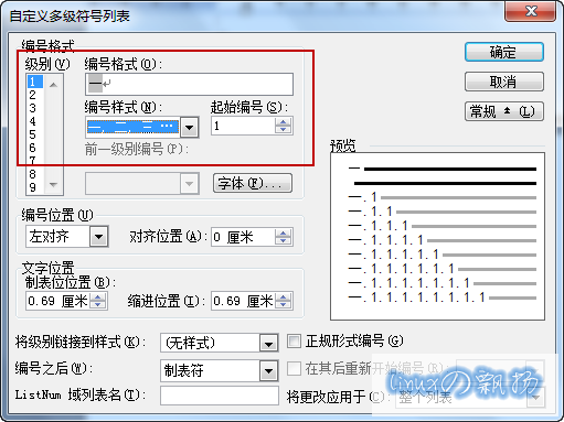 这时,留意“预览”中,第二级以后的编号是有问题的:
