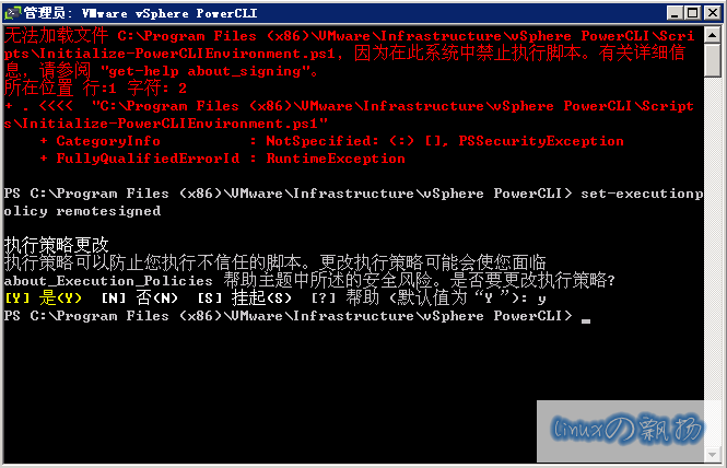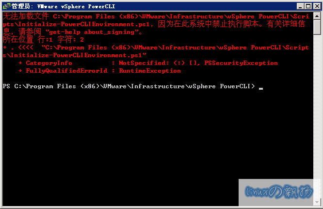 Initialize-PowerCLIEnvironment.ps1,因为在此系统中禁止执行脚本。