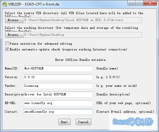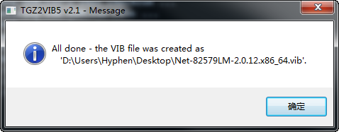 点击Run,生成VIB文件Net-82579LM-2.0.12.x86_64.vib:
