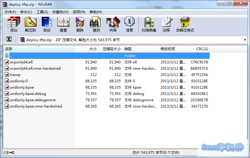 然后,解压并放到TFTP 服务器的根目录下。(Linux 下就是/tftp_boot)