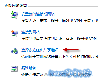 点击“选择家庭组和共享选项”: