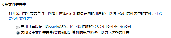 对于“公用文件夹共享”的设置可根据您的实际情况选择,通常我是“关闭”的: