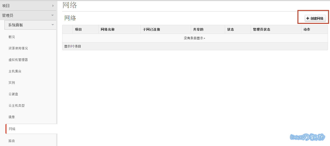 打开“管理员”——“系统面板”——“网络”,点击“创建网络”: