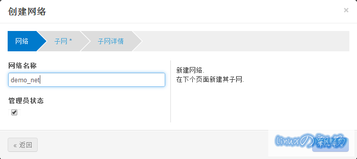 在弹出框输入相关的网络信息,私网命名为“demo_net”: