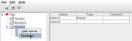 在树形菜单下,选择“Servers”,然后点击鼠标右键,在弹出菜单中,选择“Property”: