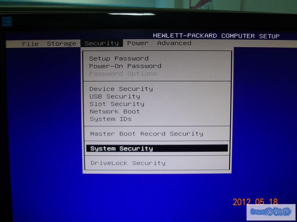 进入HP的Bios,好不容易,终于找到“Security —— System Security“里面: